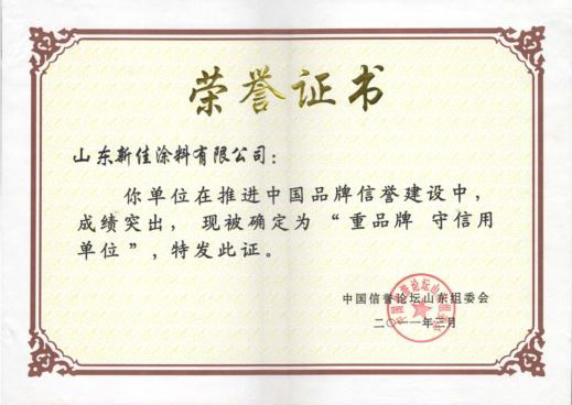 新佳涂料榮獲“重品牌 可信單位”稱號(hào)