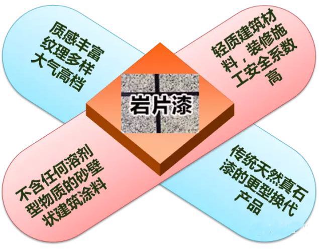 巖片漆廣泛適用于高檔氣派的樓堂館所、高層公寓、居民別墅等建筑墻面的裝修飾面,更是舊房外墻改造取代涂料、瓷磚等產品最佳選擇。